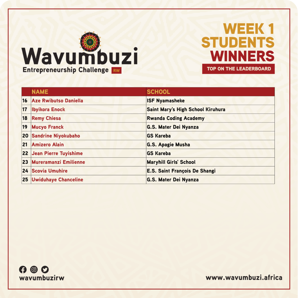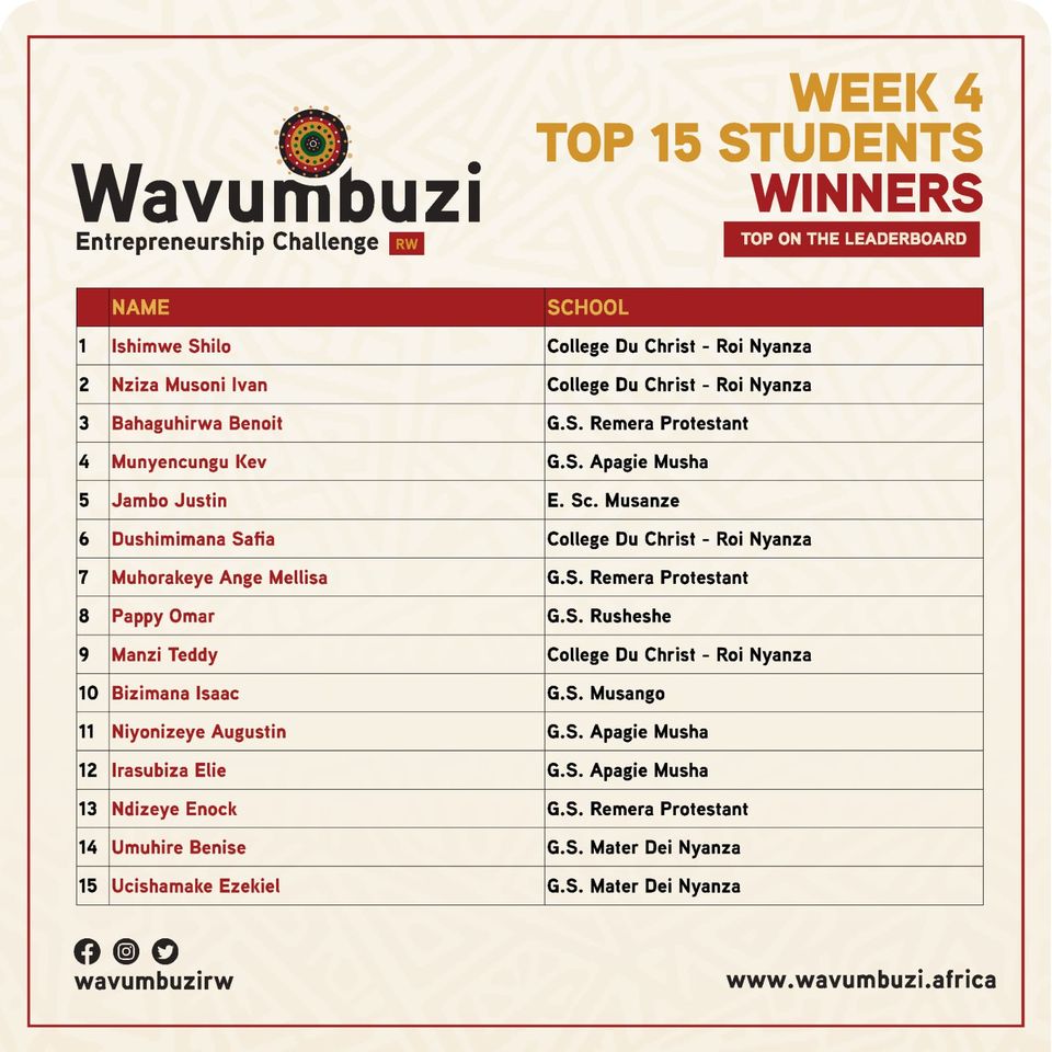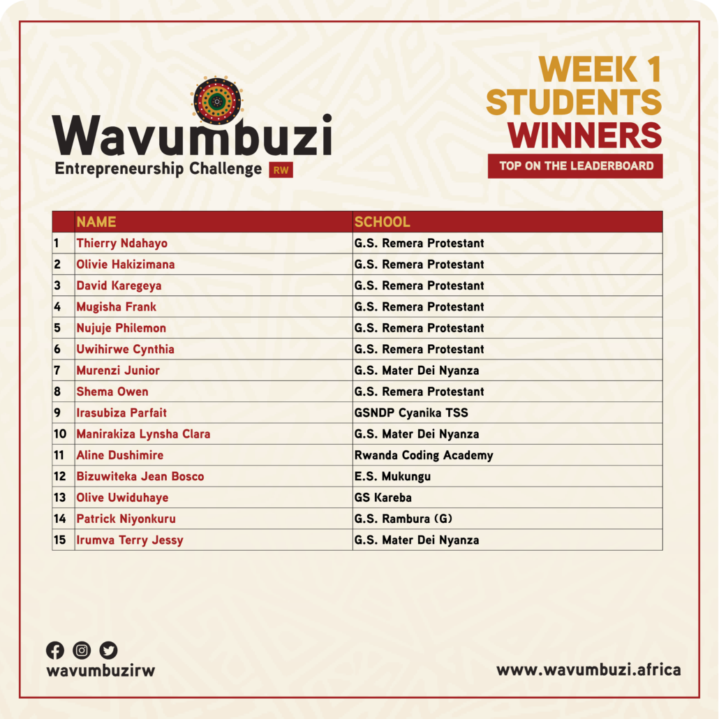 https://wavumbuzi.africa/rwanda/wp-content/uploads/2024/02/Wavumbuzi-Week-6-winners.png737739AGEChttps://wavumbuzi.africa/rwanda/wp-content/uploads/2020/02/wavumbuzi_Logo_Black_Horizontal.pngAGEC2024-02-19 10:11:552024-03-25 15:10:41Weekly Winners- Top Students Category