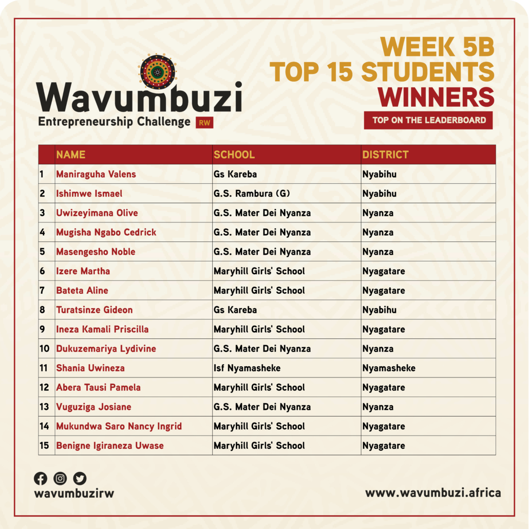https://wavumbuzi.africa/rwanda/wp-content/uploads/2024/02/WEEKLY-WINNERS_Students6.jpg80008000AGEChttps://wavumbuzi.africa/rwanda/wp-content/uploads/2020/02/wavumbuzi_Logo_Black_Horizontal.pngAGEC2024-02-19 10:15:062024-03-25 15:05:16Weekly Winners- Top 3 Students Per Quest